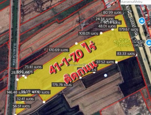 ขายที่ดินอยุธยา แปลงใหญ่สวย 68 ไร่ ติดถนนสาย 347 ปทุมธานี-บางปะหัน อ.บางประอิน กม. 29-30 โทร 095-8299247