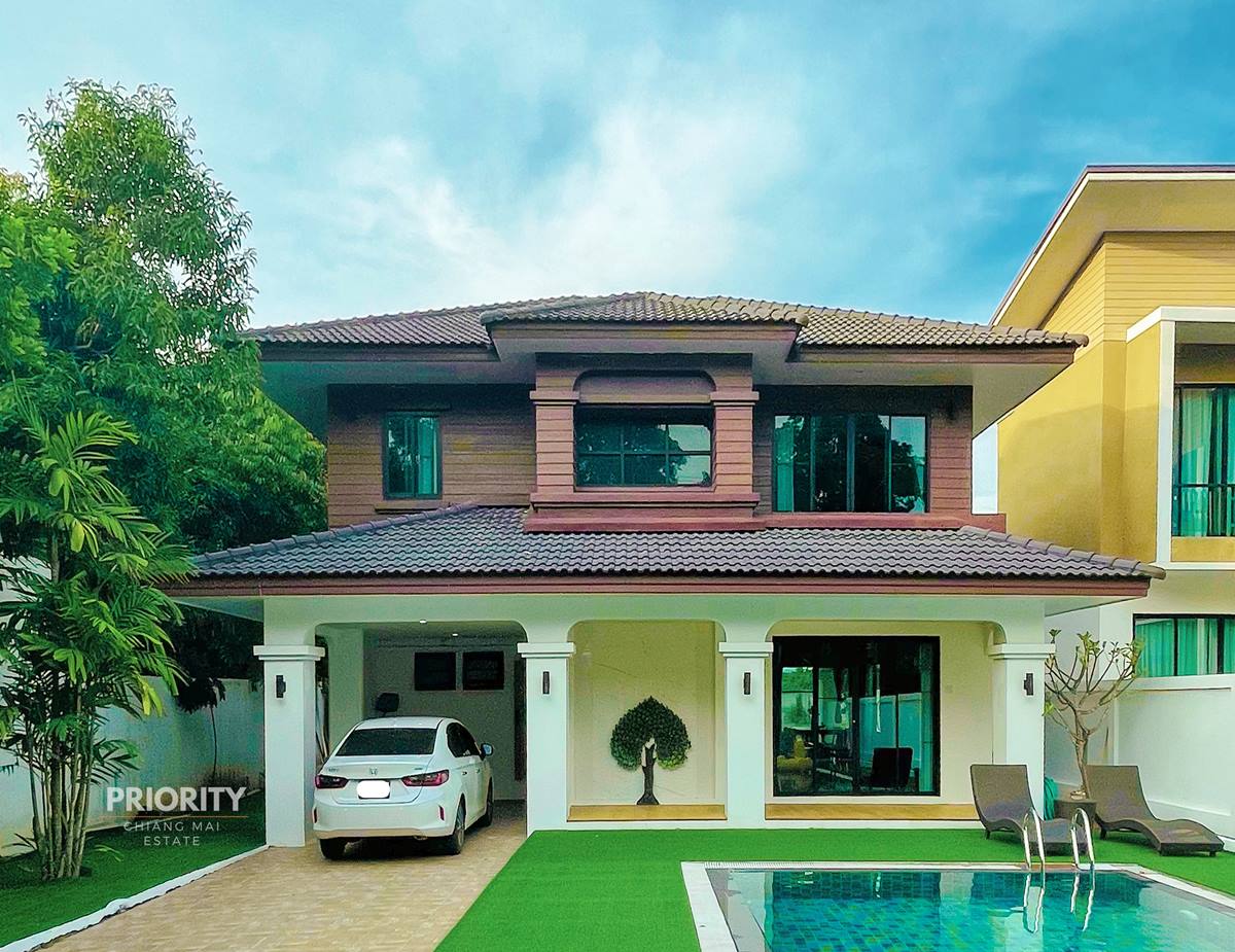ให้เช่าบ้าน 2 ชั้น (4 ห้องนอน 4 ห้องน้ำ 1 ห้องอเนกประสงค์ 1 ห้องรับแขก 1 ครัวฝรั่ง พร้อมสระว่ายน้ำส่วนตัว)